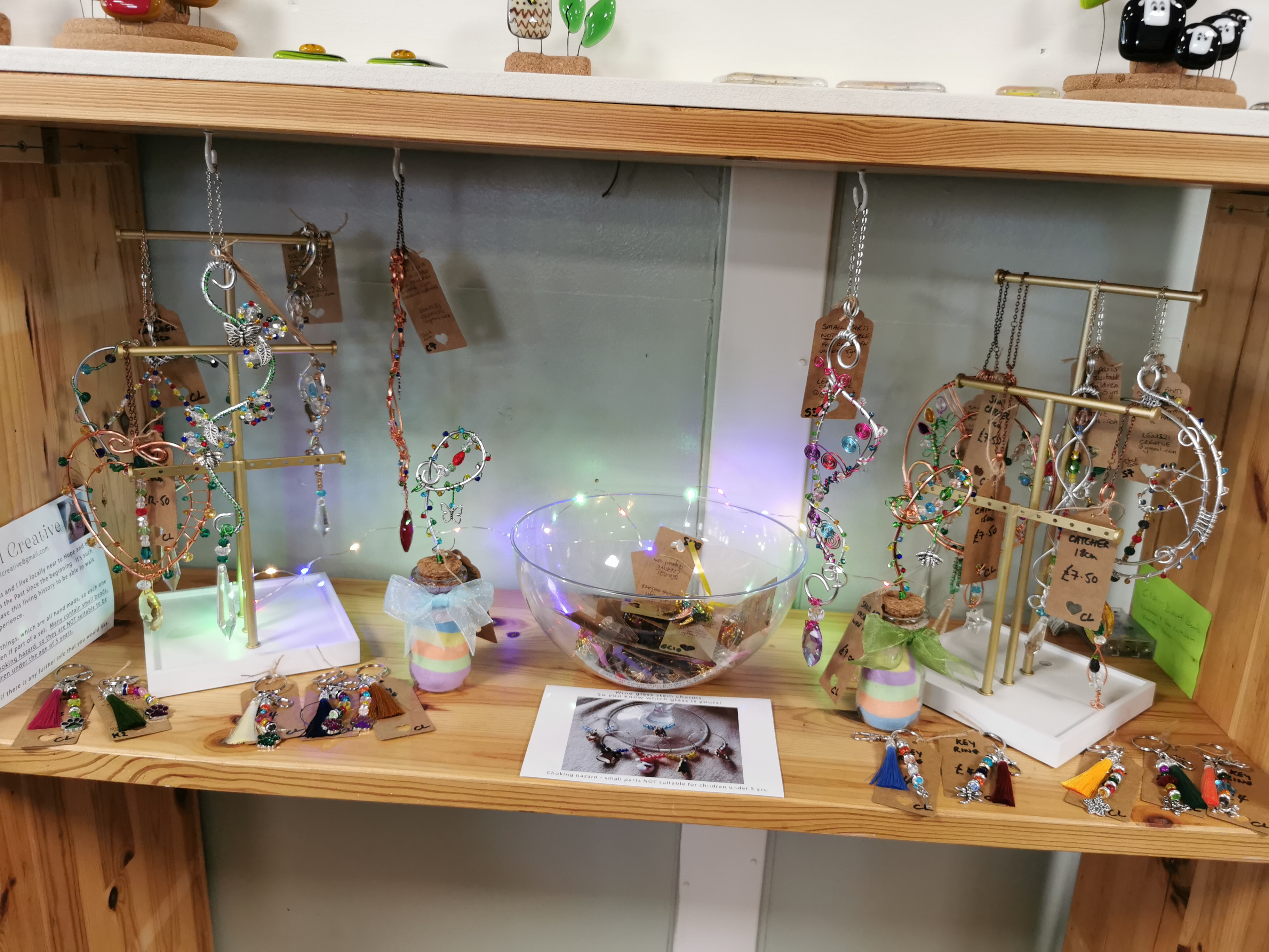 I hand make craft pieces, suncatchers, sand jar wire flowers, keyrings and some jewellery which I sell via Folksy.
